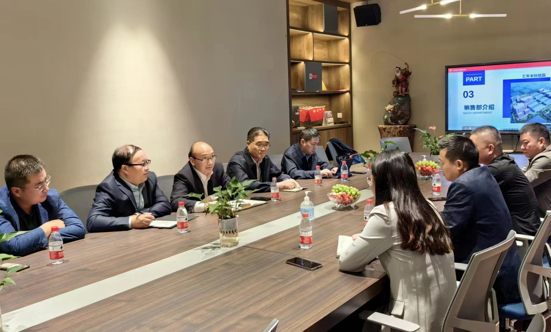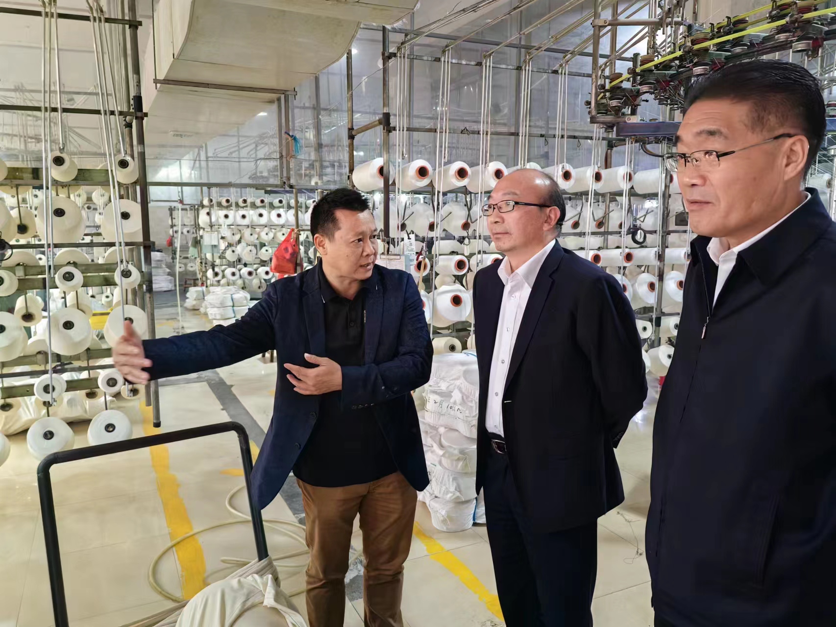 在匯年豐紡織公司,丁銳一行在陸汝針總經理的陪同下參觀了該公司紡織生產線,并就產品定位、成本、質量及交期等有關情況進行了座談交流。雙方表示,工投集團與匯年豐紡織建立了良好的業(yè)務合作關系,希望下一步能夠繼續(xù)加深合作,擴大業(yè)務量。