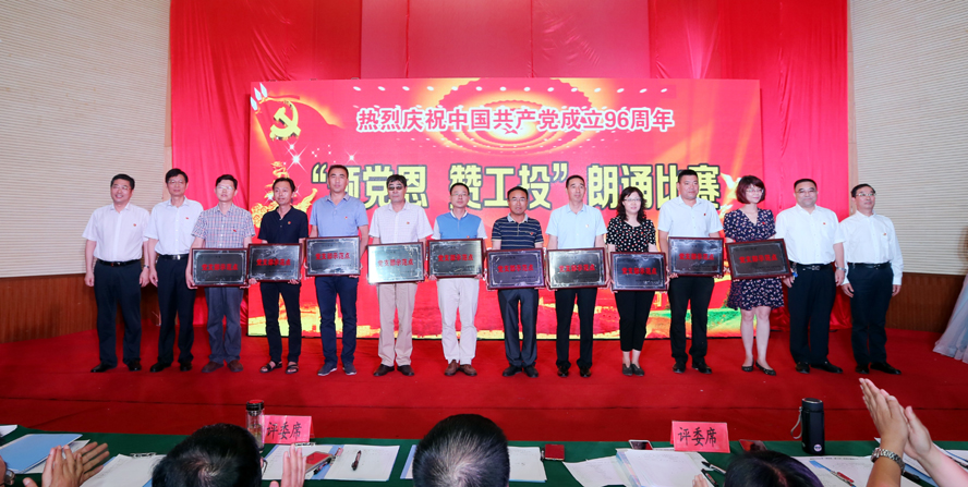 經(jīng)過預(yù)賽選拔出的12支代表隊(duì),用激情飽滿、聲情并茂的朗誦,抒發(fā)了工投人聽黨話、跟黨走、熱愛黨、獻(xiàn)身祖國的美好情懷,展示廣大工投人蓬勃向上的精神面貌和銳意進(jìn)取、建設(shè)美好工投的信心和勇氣。經(jīng)過一番緊張激烈的角逐,最終華茂、徐圩公司獲得一等獎(jiǎng),利海、灌西、青口、氨綸公司獲得二等獎(jiǎng),房地產(chǎn)、奧神新材料、神特新材料、供電、金橋制鹽、臺(tái)北公司分獲三等獎(jiǎng)。