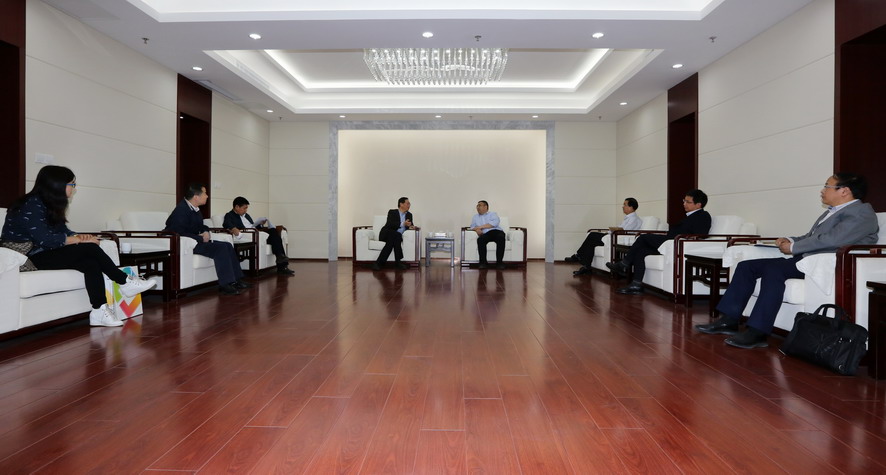5月7日上午,江蘇海外企業(yè)集團(tuán)董事長(zhǎng)黃宏亮一行4人來(lái)我公司洽談合作,公司董事長(zhǎng)、黨委書(shū)記楊龍、總經(jīng)理胡建明、副總經(jīng)理?xiàng)顕?guó)新等親切會(huì)見(jiàn)了黃董事長(zhǎng)一行。雙方就有關(guān)合作事宜進(jìn)行了深入交流。