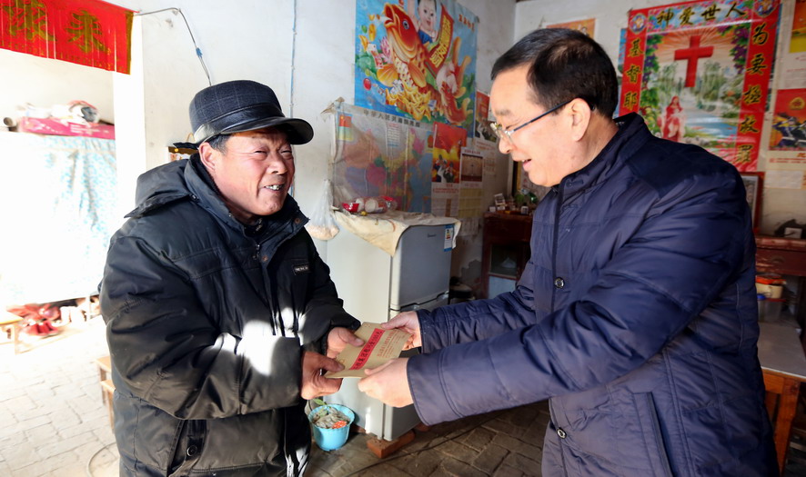 1月20日上午,集團公司總經理胡建明代表集團黨委專門來到對口扶貧點,贛榆區(qū)沙河鎮(zhèn)北朱果村走訪慰問貧困戶。在沙河鎮(zhèn)人大主席曹軍華的陪同下,胡建明共看望了十戶貧困戶,每到一家,都關切地詢問他們生產生活狀況和遇到的困難,勉勵他們堅定信心,樹立戰(zhàn)勝困難的勇氣,并為他們送去慰問金和節(jié)日的祝福。