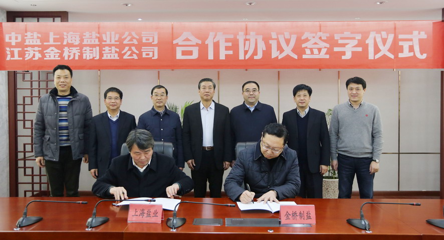 12月16日下午,金橋制鹽有限公司與中鹽上海鹽業(yè)公司舉行戰(zhàn)略合作協(xié)議簽約儀式,集團(tuán)公司董事長、黨委書記楊龍,總經(jīng)理胡建明、副總經(jīng)理?xiàng)顕拢虾{}業(yè)公司總經(jīng)理、上海市鹽務(wù)局局長王學(xué)仕,上海鹽業(yè)公司黨委副書記李光銳等出席簽約儀式。金橋制鹽公司董事長朱桂玉與上海鹽業(yè)公司總經(jīng)理助理劉樹國代表雙方在協(xié)議上簽字。