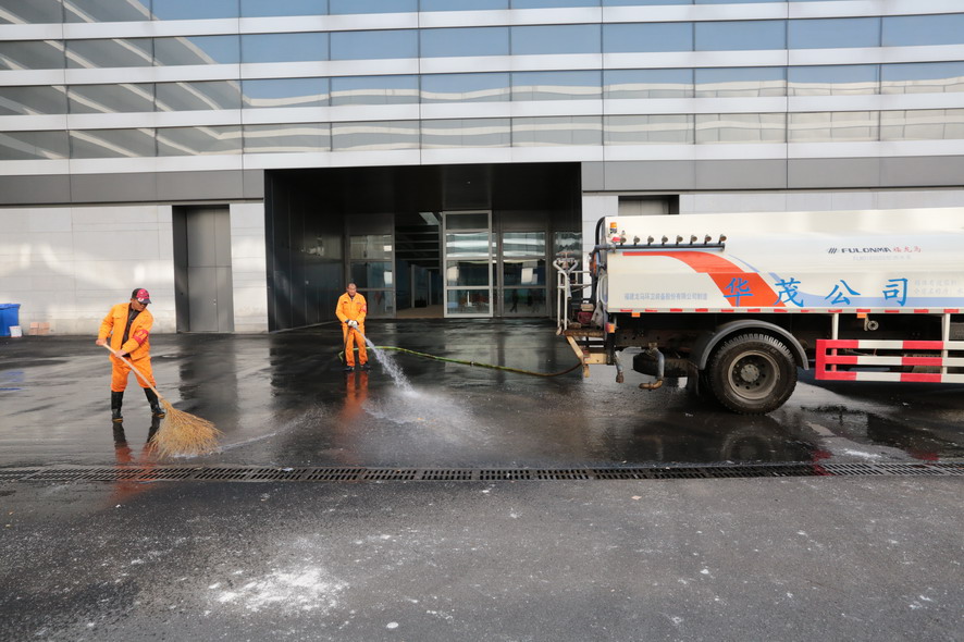 從10月29日以來(lái),該公司啟動(dòng)預(yù)案,統(tǒng)籌策劃,組織安排人員,調(diào)度機(jī)械設(shè)備,分解任務(wù),明確責(zé)任時(shí)間節(jié)點(diǎn),有效使用創(chuàng)衛(wèi)成果,轉(zhuǎn)投到“連博會(huì)”環(huán)境整治工作中來(lái)。300多名職工不顧連續(xù)5個(gè)多月創(chuàng)衛(wèi)奮戰(zhàn)的疲倦和勞累,以飽滿激情、高昂斗志,加班加點(diǎn),奮戰(zhàn)在連博會(huì)環(huán)衛(wèi)整治工作“新戰(zhàn)場(chǎng)”。連日來(lái),累計(jì)在展館周邊區(qū)域新植銀杏樹40余株、石楠樹30多株,更新草坪10000多平方米,美化環(huán)境,烘托氛圍。在展館廣場(chǎng)、附近干、支道路上,每天安排2臺(tái)大型洗掃車循環(huán)清掃沖洗和灑水降塵作業(yè),安排120多名環(huán)衛(wèi)人員撿拾動(dòng)態(tài)垃圾、清理布展施工垃圾雜物,提升展館周邊區(qū)域的場(chǎng)地路面整潔衛(wèi)生養(yǎng)護(hù)等級(jí)。連云港火車東站廣場(chǎng)新增加30名環(huán)衛(wèi)人員,對(duì)廣場(chǎng)的路面、橋欄、果皮箱、花壇、座椅等進(jìn)行多次清掃擦洗,撿拾清理清運(yùn)垃圾,并將車站廣場(chǎng)環(huán)衛(wèi)保潔下班時(shí)間由晚8點(diǎn)延長(zhǎng)到10點(diǎn),通過(guò)細(xì)致優(yōu)質(zhì)服務(wù),強(qiáng)化窗口衛(wèi)生環(huán)境,愉悅參展商和來(lái)客的心情。