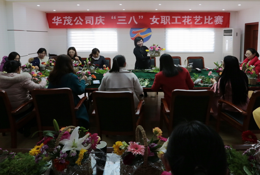 為慶?!叭恕眹?guó)際勞動(dòng)?jì)D女節(jié),營(yíng)造熱烈的節(jié)日氛圍,3月6日下午,華茂綠化工程公司工會(huì)開展了女職工“花藝比賽”活動(dòng)。活動(dòng)特邀花藝?yán)蠋煬F(xiàn)場(chǎng)授課,為女職工們講述了插花的種類和插花的原則。在聽取老師花藝講座后,女職工們開始了插花比賽。經(jīng)過老師點(diǎn)評(píng),最終趙盼、趙宏媛、王芬分別獲得了本次比賽的前三名。