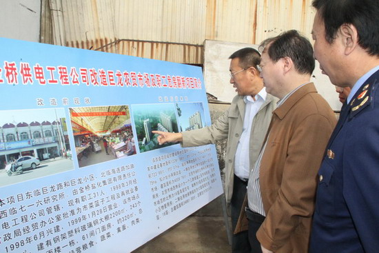 在巨龍農(nóng)貿(mào)市場,范總向秦國丞副秘長簡要匯報(bào)了巨龍農(nóng)貿(mào)市場的基本情況以及改造方案,通過改造實(shí)現(xiàn)市場空間布局合理化、設(shè)施建設(shè)標(biāo)準(zhǔn)化、長效菅理規(guī)范化的總體目標(biāo)。秦國丞副秘書長對公司巨龍農(nóng)貿(mào)市場的改造方案給予較高評價(jià),充分肯定了公司在創(chuàng)建國家文明衛(wèi)生城市、加強(qiáng)我市菜藍(lán)子工程建設(shè)、提升群眾幸福指數(shù)方面作出的貢獻(xiàn);同時(shí),要求我公司繼續(xù)深入調(diào)研,盡快制定具體實(shí)施方案,報(bào)政府部門審批;并指示隨行的有關(guān)部門人員,要給予全力配合,對改善民生工程開綠燈。(司宣 盧正清)
