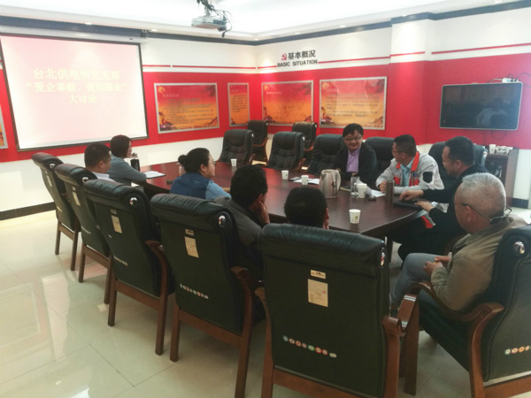 臺北供電所黨支部在5月25日召開“愛企奉獻、愛崗敬業(yè)”主題討論會,結合經(jīng)理助理徐磊、集團勞模于廣兵等優(yōu)秀黨員親身講解先進事跡,廣泛征求生產經(jīng)營、改革發(fā)展的好辦法、好建議,組織黨員干部直面問題、凝聚共識,為企業(yè)健康發(fā)展建言獻策。(錢明華)