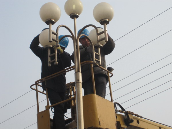 1月13日,青口供電所為了鹽場春節(jié)期間的美化、亮化,組織七名職工義務為鹽場搶修路燈。(宋中文)