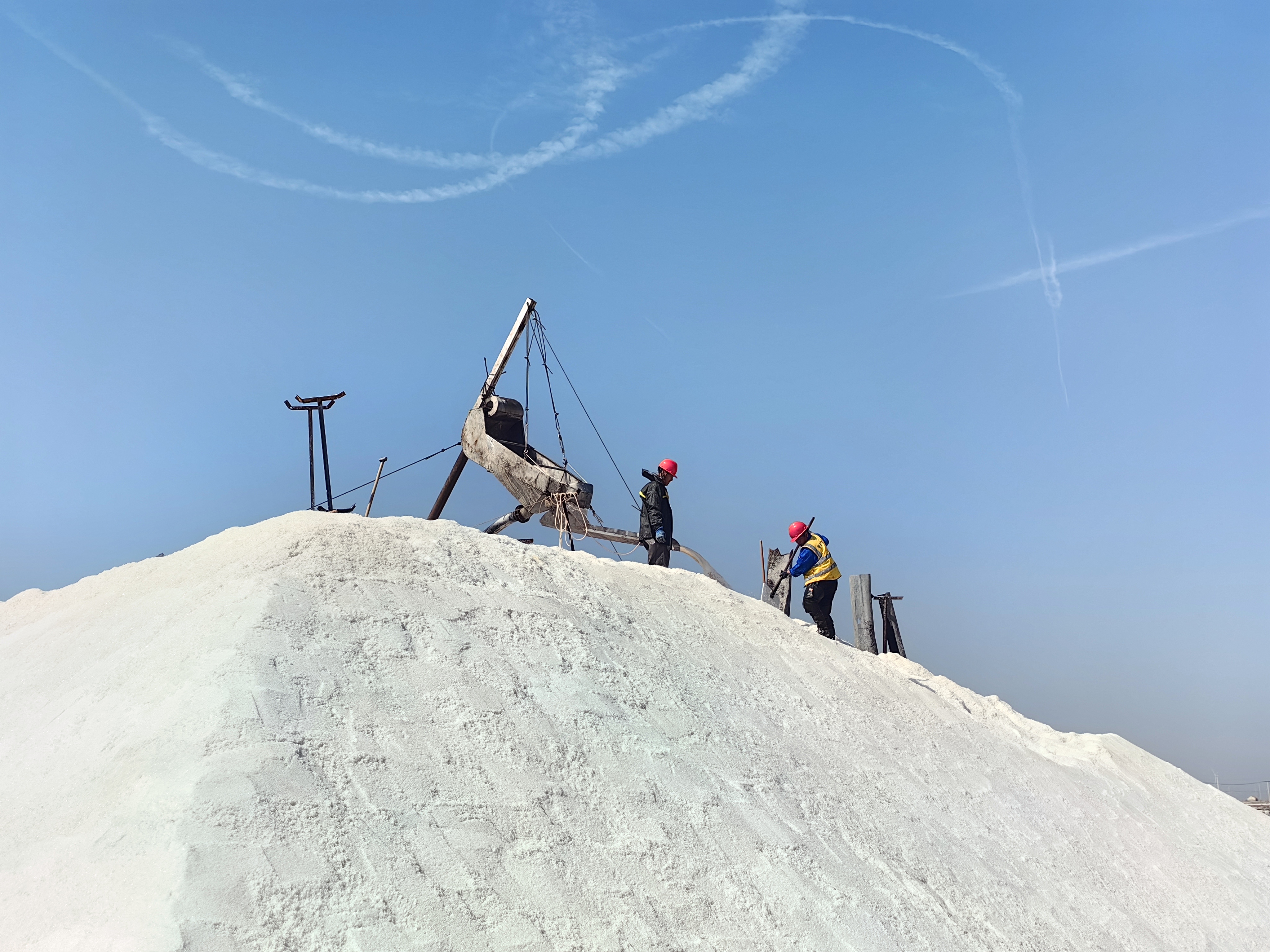 “此次我們新河制鹽分公司出動3臺扒鹽機組,天氣回溫正常后,我們將再出兩臺扒鹽機組,計劃春季扒鹽18萬噸。”新河制鹽分公司經(jīng)理程龍講道。