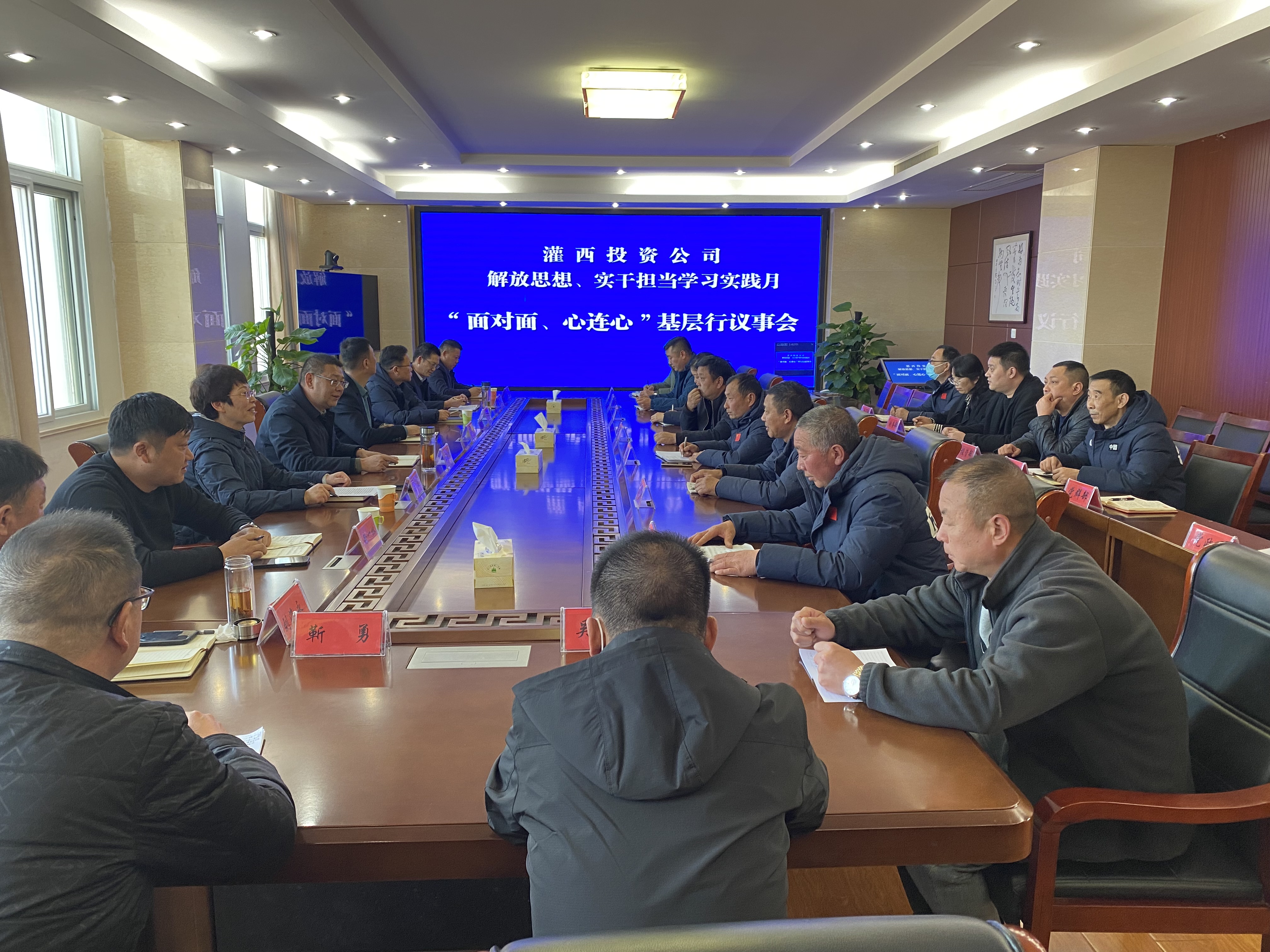 自“解放思想、實干擔當學習實踐月”活動以來,灌西投資公司堅持問題導向、目標導向、效果導向,縱深推進學習實踐,3月19日,灌西投資公司召開“面對面、心連心”基層行議事會,公司班子成員、職工代表及各部門負責人參加議事會。