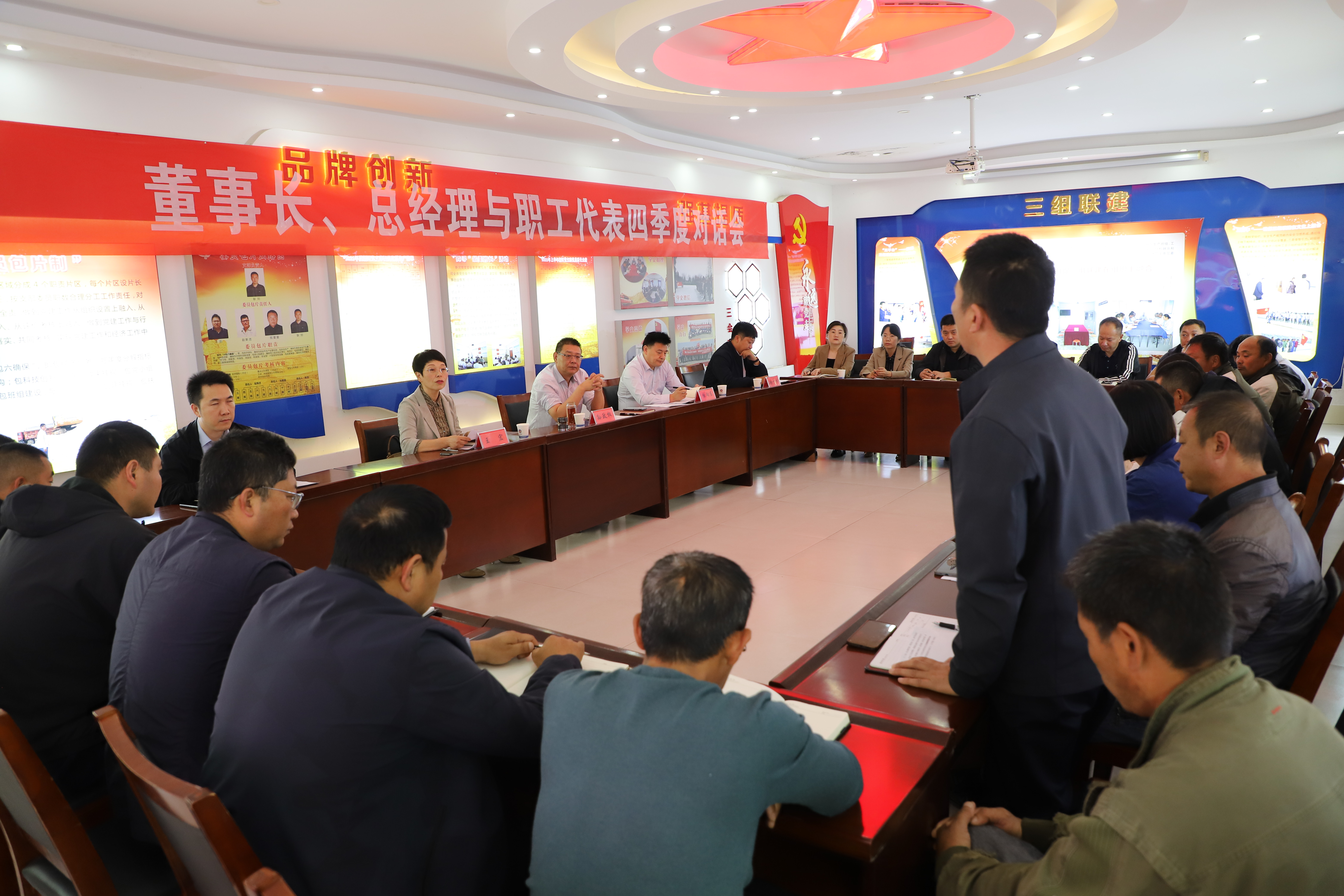 2023年10月19日下午,產(chǎn)業(yè)工人代表與公司董事長、總經(jīng)理齊聚一堂,就生產(chǎn)生活中遇到的問題提建議、獻良策。