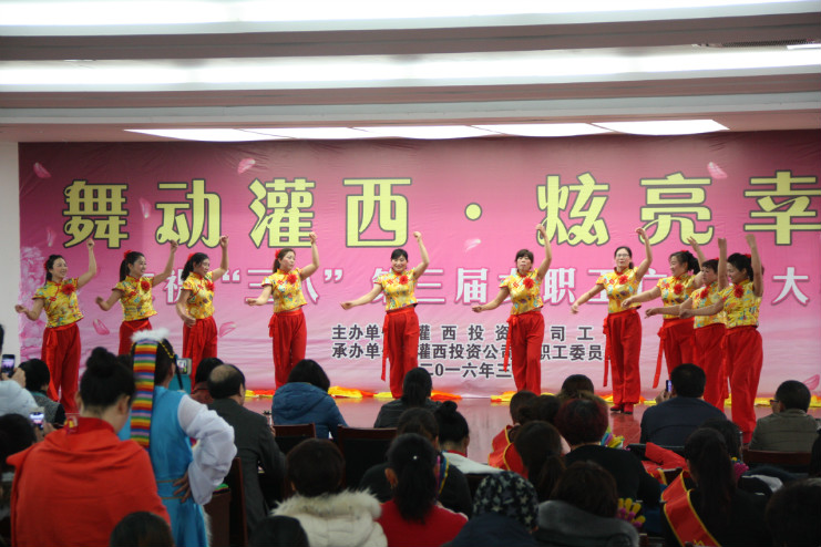 為了迎接第106個(gè)國際“三八”婦女節(jié)的到來,3月8日上午,灌西投資公司舉辦了“舞動(dòng)灌西·炫亮幸福”第三屆女職工廣場舞大賽。這次比賽邀請了尚慶葉等七名集團(tuán)公司各單位原女工主任擔(dān)任評(píng)委,做到了公平、公正,比賽成績充分顯示了各自的真實(shí)水平。來自全公司各單位共11支參賽隊(duì)伍給大家來了精彩的表演,觀看比賽的職工群眾200余人。