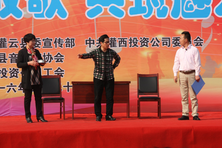 灌云縣委傳部副部長、文聯(lián)主席孫成軍、音協(xié)主席吳平、集團公司工會副主席李嵐琴,灌西投資公司領導班子成員以及來自公司各條戰(zhàn)線的廣大職工和群眾近千人一同觀看了演出。演出前,投資公司黨委副書記、總經(jīng)理李國文作了熱情洋溢的致詞。