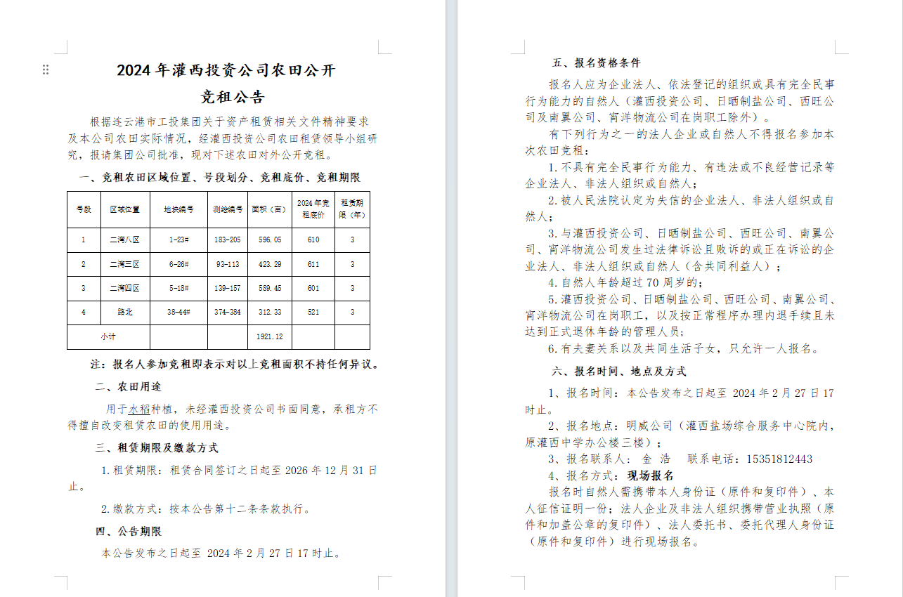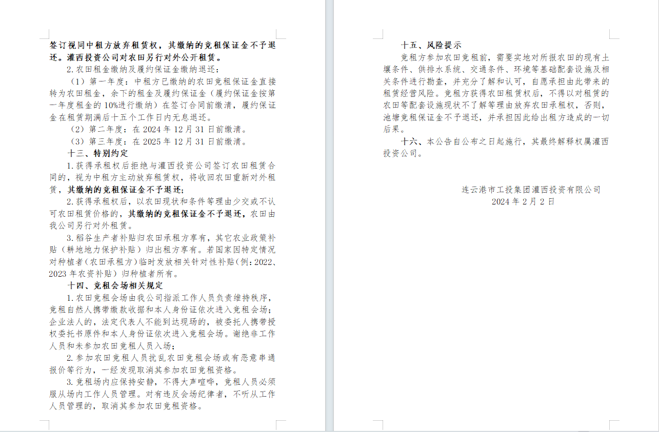 2024年灌西投資公司農田公開 競租公告