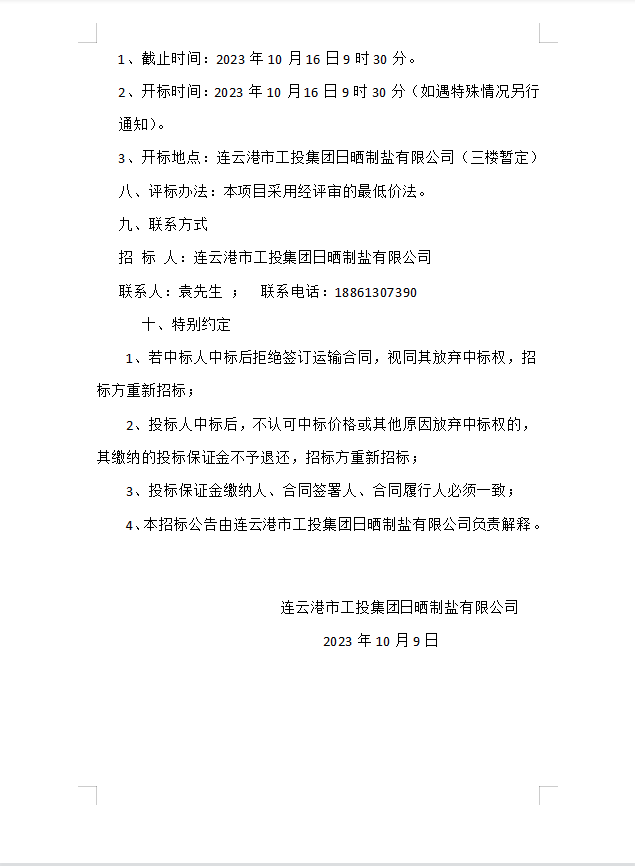 連云港市工投集團(tuán)日曬制鹽有限公司 海運(yùn)物流服務(wù)業(yè)務(wù)招標(biāo)二次公告