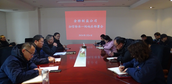 公司副總經(jīng)理凌家佳傳達了《集團公司氣象災害應對工作提示單》要求。公司黨委書記、董事長、總經(jīng)理田磊宣讀《公司掃雪除冰事故專項應急預案》,并就啟動掃雪除冰一級響應工作提要求:要提高認識、統(tǒng)籌推進,加強值班值守,切實提高冰雪清除工作的效率和質(zhì)量;要統(tǒng)一思想、奮力擔當,履行好安全生產(chǎn)責任,全力做好融雪鹽市場保供工作。