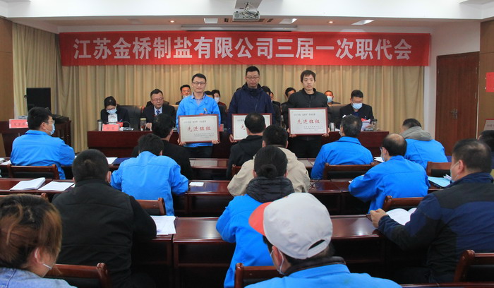 大會簽訂了《2021年度集體合同》、《2021年度經營認標責任書》,與會代表認真審議通過了總經理工作報告,通過了大會決議、有關方案和意見。加工鹽車間、包裝鹽車間、銷售部依次作了表態(tài)發(fā)言。大會表彰了第九屆“金橋杯”勞動競賽、2020年“大干四季度”勞動競賽的先進集體和先進個人以及2020年度“金橋工匠”。(金宣)