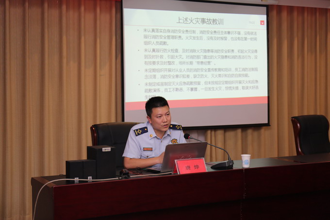 為規(guī)范消防安全管理,提高公司干部職工消防安全意識(shí)和火災(zāi)應(yīng)急處置能力,7月7日,我公司邀請(qǐng)連云區(qū)消防隊(duì)副隊(duì)長(zhǎng)唐燁,在三樓會(huì)議室開(kāi)展消防安全知識(shí)培訓(xùn)。公司董事長(zhǎng)、黨委書(shū)記、總經(jīng)理朱桂玉,黨委副書(shū)記、工會(huì)主席曹開(kāi)明,副總經(jīng)理何啟明,總經(jīng)理助理李忠祥,各單位、車間、部室人員參加了培訓(xùn)。