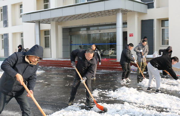 為保障道路暢通和員工出行安全,2月5日上午,我公司組織掃雪除冰義務(wù)勞動(dòng)。