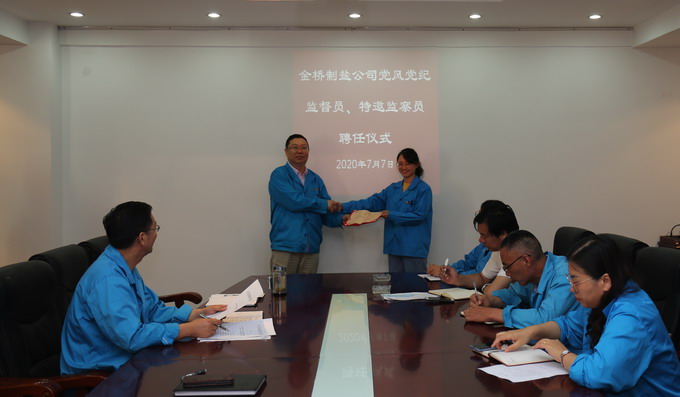 為進一步加強黨風廉政建設,拓寬監(jiān)督渠道,構建黨內(nèi)監(jiān)督、行政監(jiān)察與群眾監(jiān)督相結合的監(jiān)督制約機制,7月7日,我公司在二樓會議室舉行黨風黨紀監(jiān)督員、特邀監(jiān)察員聘任儀式,黨委書記、董事長、總經(jīng)理朱桂玉為盧明江、徐元等6名黨風黨紀監(jiān)督員和徐永亮、陳東等6名特邀監(jiān)察員頒發(fā)了聘書。(金宣 金紀)