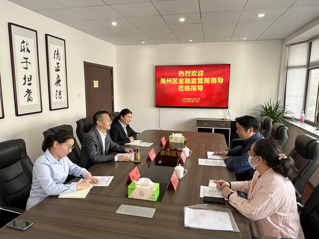 4月18日下午,海州區(qū)金融監(jiān)管局副局長(zhǎng)萬利軍、崔敏一行蒞臨工投科貸公司調(diào)研指導(dǎo)。