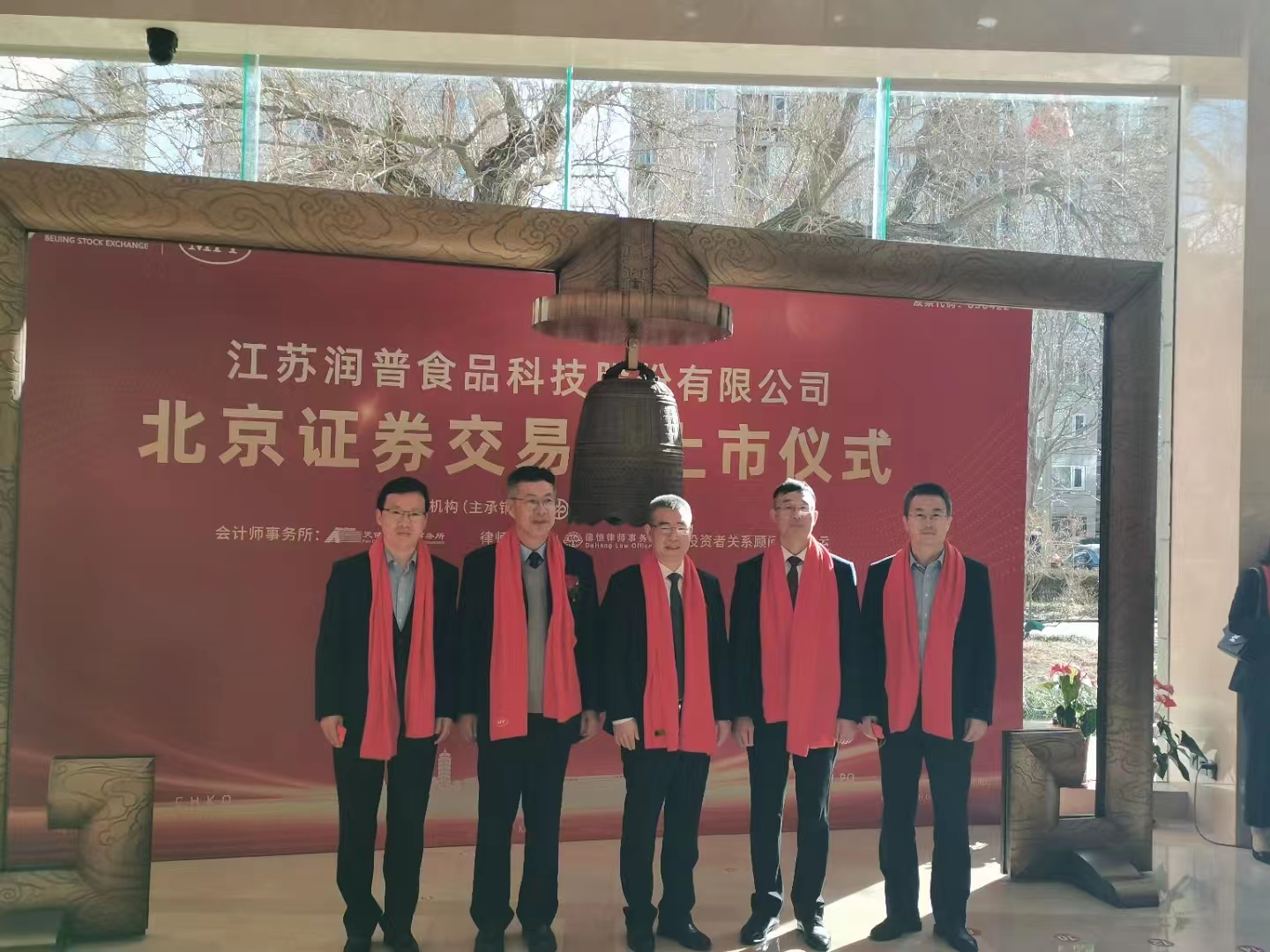 3月1日,工投集團產業(yè)基金重點投資企業(yè)——江蘇潤普食品科技股份有限公司(以下簡稱“潤普食品”)在北京證券交易所首發(fā)上市,股票代碼836422,發(fā)行價格8.5元/股。集團公司總經理張六林受邀出席上市儀式。