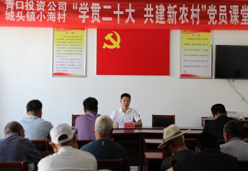 為推動(dòng)黨的二十大精神在鄉(xiāng)村落地生根,6月28日上午,青口投資公司、城頭鎮(zhèn)小海村聯(lián)合開(kāi)展“學(xué)貫二十大 共建新農(nóng)村”黨員課堂,由公司機(jī)關(guān)優(yōu)秀黨務(wù)干部組成的二十大精神宣講隊(duì),走進(jìn)結(jié)對(duì)共建的贛榆區(qū)城頭鎮(zhèn)小海村開(kāi)展集中式、通俗化宣講。公司黨委副書(shū)記、工會(huì)主席梁永,城頭鎮(zhèn)副鎮(zhèn)長(zhǎng)王延光,城頭鎮(zhèn)小海村支部書(shū)記徐坤參加活動(dòng)。