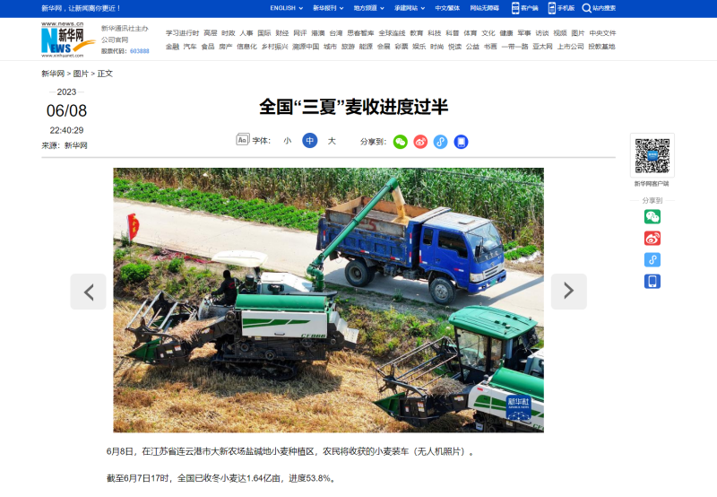 我公司耐鹽堿小麥開鐮收割受到各級(jí)媒體關(guān)注