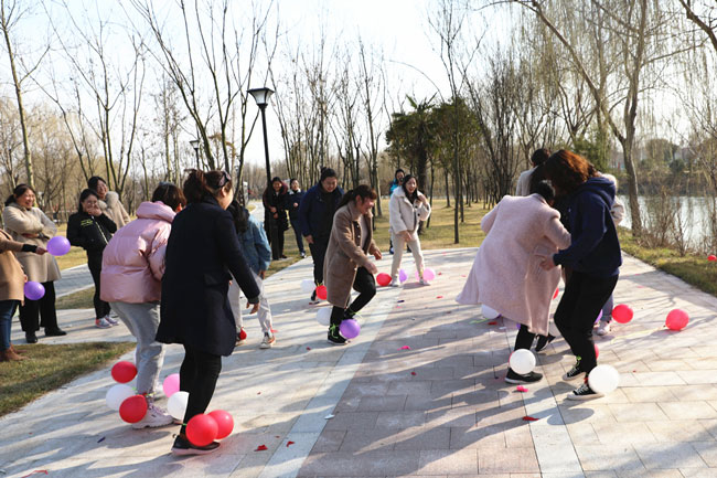 為使大家身心得到最大放松,投入戶外體驗清新大自然,在絲路小鎮(zhèn)公園進(jìn)行了“三月女人天 別樣婦女節(jié)”主題戶外活動。游戲“你畫我猜”中,隊員們有的配合默契一猜既中,也有的用肢體艱難的比劃著,引的大家捧腹大笑?!安葰馇颉庇螒蚋亲尙F(xiàn)場氣氛達(dá)到沸點,每人都放開平日工作中的嚴(yán)謹(jǐn),放松心情在場地上追逐奔跑。大家在游戲中收獲了歡聲笑語及片片感動,同時,通過游戲提高大家的合作意識和進(jìn)取精神,營造濃郁節(jié)日氣氛。