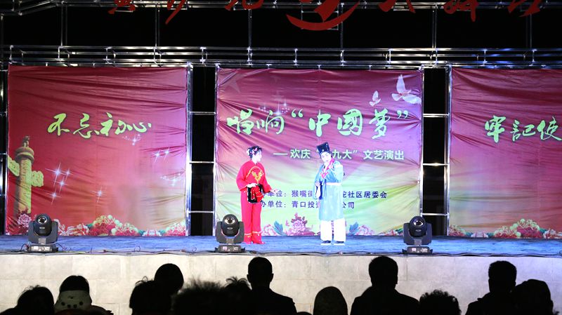 10 月 23 日 晚,猴嘴街道黃沙坨社區(qū)和青口公司聯(lián)合舉辦的以“不忘初心 牢記使命 唱響中國夢”為主題的慶十九大文藝演出活動(dòng)在黃沙坨大舞臺(tái)舉辦,這是在秋收前,用豐富多彩的文娛方式慶祝十九大召開。猴嘴街道黨工委副書記王新崗、公司黨委副書記、副總經(jīng)理史祥平現(xiàn)場觀看了演出。