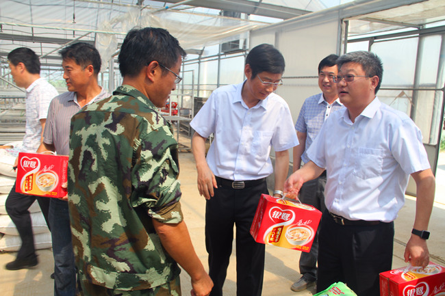 7月20日上午,集團(tuán)副總經(jīng)理張其海、總會(huì)計(jì)師匡友本來(lái)我公司大新農(nóng)場(chǎng)、生態(tài)種養(yǎng)中心走訪慰問(wèn)拼搏在農(nóng)業(yè)種養(yǎng)一線的基層職工,為他們送上綠豆、白糖、牛奶及八寶粥等防暑降溫品。投資公司董事長(zhǎng)、黨委書記胡傳法、黨委副書記、副總經(jīng)理史祥平、副總經(jīng)理周緒祥陪同慰問(wèn)。