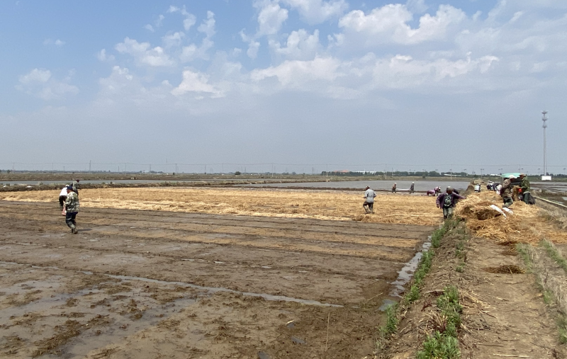 6月10日,在大新農(nóng)場的秧板田里,新品種“稻花香2號”啟動落谷作業(yè),撒種、蓋草、鋪膜,處處都是繁忙景象,成了綠色田野上的一道亮麗風(fēng)景線。