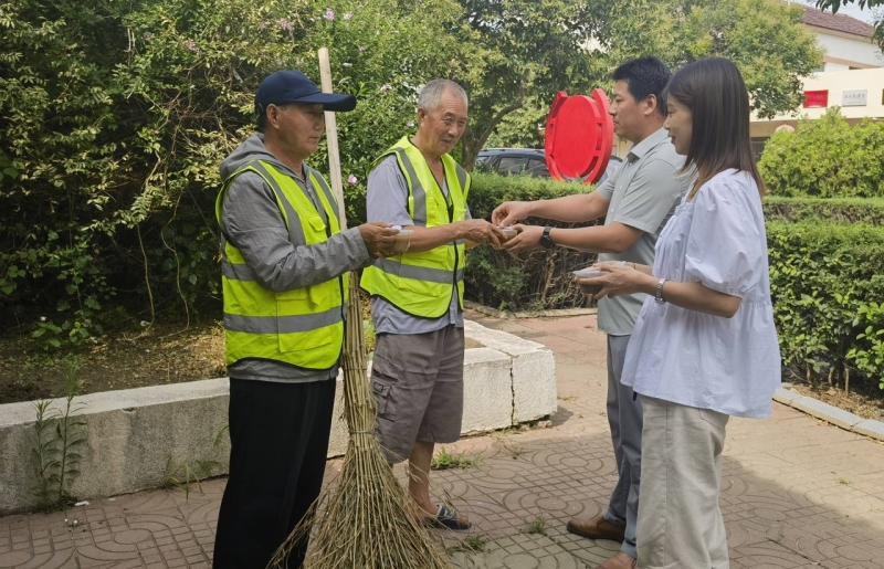 烈日炎炎,有這樣一群人在驕陽下依然堅守在自己的工作崗位上,他們就是黃沙坨美容師——環(huán)衛(wèi)工人。為了給高溫下辛苦工作的環(huán)衛(wèi)工人送去一份清涼,讓他們能夠以良好的狀態(tài)投入到保潔工作中,近日,生產(chǎn)生活服務中心分會將熬制好的綠豆湯分裝在碗內(nèi),送給正在作業(yè)的環(huán)衛(wèi)工人。同時,為他們科普防暑降溫知識,叮囑他們提高安全健康意識,合理調(diào)整工作時間。