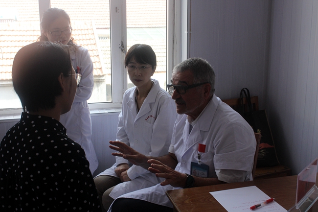 Henning Ritter為德國(guó)奧爾登堡大學(xué)附屬醫(yī)院乳腺外科教授。長(zhǎng)期從事婦科腫瘤、產(chǎn)科、乳腺腫瘤治療臨床研究, 2013年獲得歐洲外科協(xié)會(huì)腹腔鏡技能金獎(jiǎng)。在活動(dòng)現(xiàn)場(chǎng),Henning Ritter教授帶領(lǐng)市二院的專家,對(duì)前來(lái)就診的女工做了認(rèn)真細(xì)致的檢查診斷,有的女工拿著之前檢查的結(jié)果請(qǐng)教授診斷,專家們對(duì)她們提出的問(wèn)題一一做了解答,并給予會(huì)診意見。貼心的服務(wù)讓女職工足不出戶就可以享受到國(guó)際醫(yī)學(xué)專家的診斷。