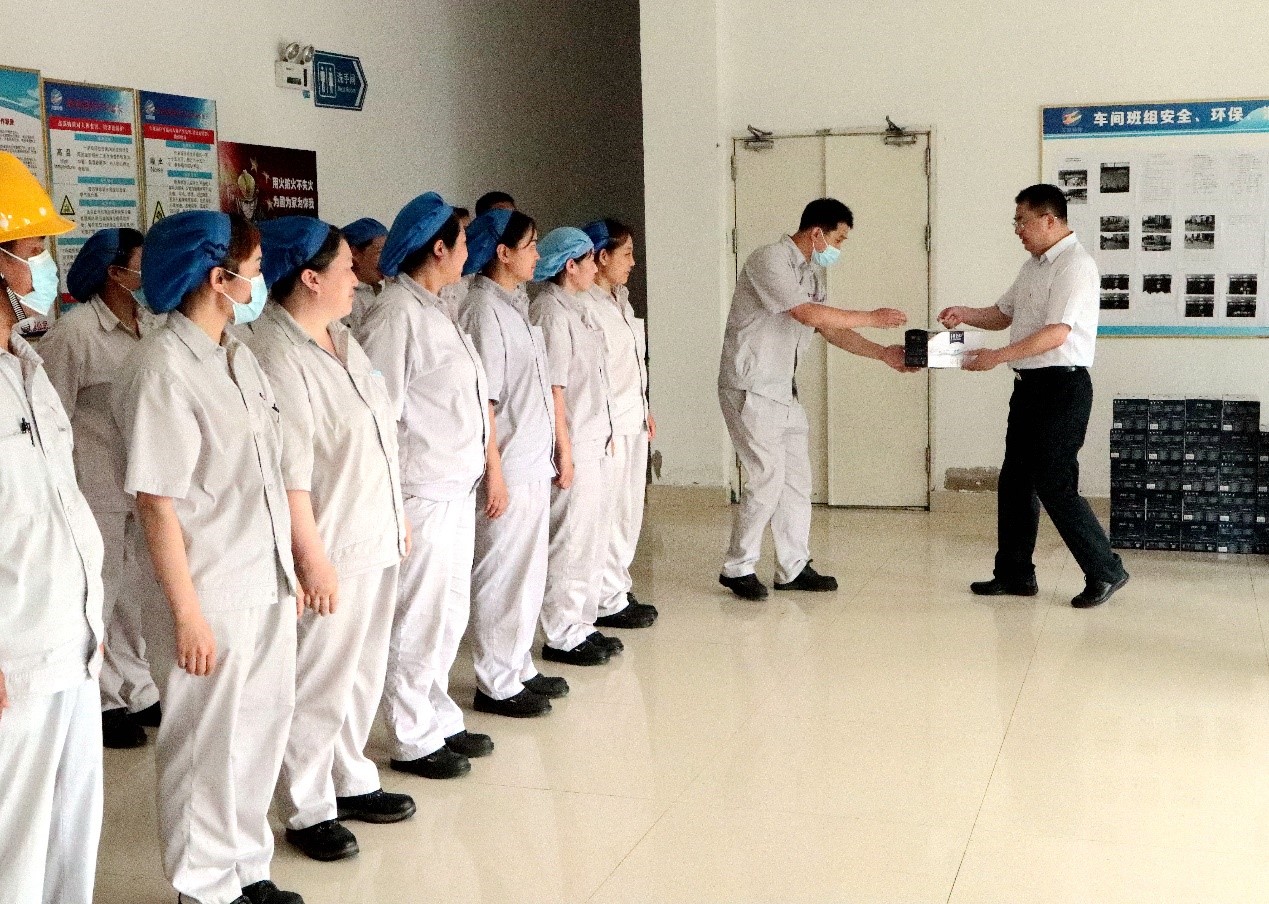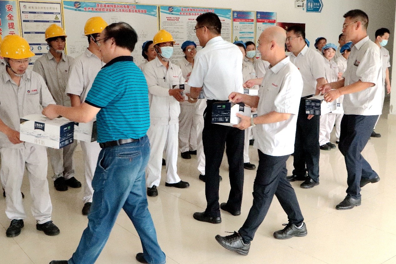 728日上午,集團(tuán)公司黨委副書(shū)記戴鴻鳴、工會(huì)主席劉承志一行到公司慰問(wèn)生產(chǎn)一線員工,為生產(chǎn)一線員工送來(lái)牛奶、綠豆、白糖、大米等防暑降溫慰問(wèn)品。公司董事長(zhǎng)張斌、總經(jīng)理韓立新等領(lǐng)導(dǎo)陪同。