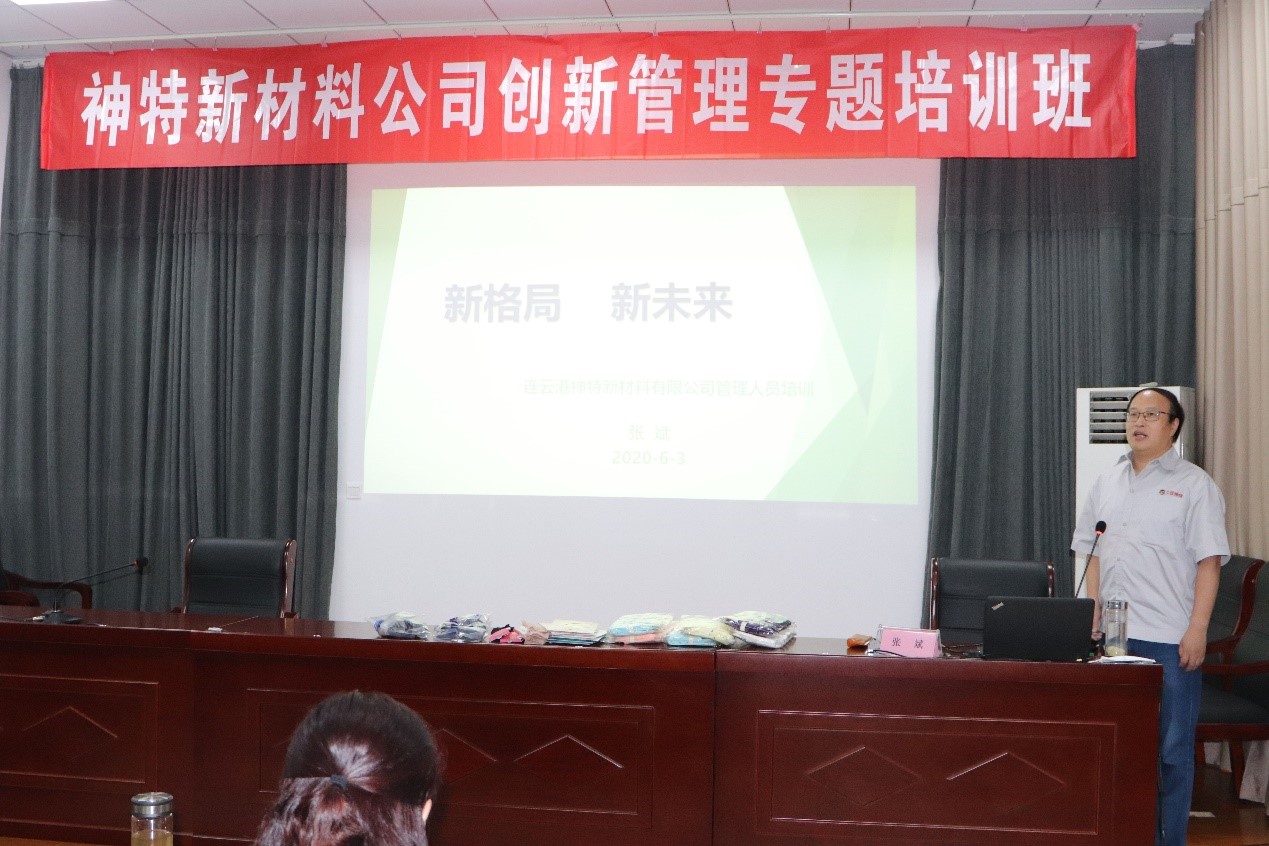 公司董事長(zhǎng)張斌作題為《新格局,新未來》創(chuàng)新管理專題輔導(dǎo),從復(fù)雜世界格局下的創(chuàng)新思維、管理的意義、生產(chǎn)與作業(yè)管理、質(zhì)量管理與項(xiàng)目管理等四方面內(nèi)容授課,運(yùn)用大量生動(dòng)有趣的故事、形象具體的事例,加深員工對(duì)知識(shí)點(diǎn)的理解,提高學(xué)習(xí)成效,鼓勵(lì)員工走出舒適區(qū),敢于冒險(xiǎn)和挑戰(zhàn),激發(fā)員工干事創(chuàng)業(yè)熱情,開創(chuàng)神特跨越式發(fā)展新局面。