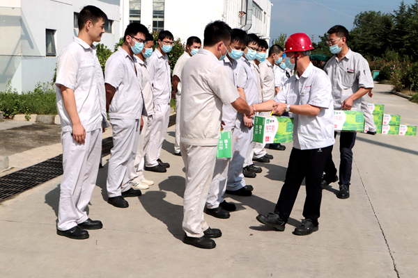 730日上午,公司黨支部書記、總經(jīng)理韓立新代表公司開展夏季送清涼活動,為全體職工送上組織的關(guān)懷和貼心準(zhǔn)備的牛奶等防暑降溫慰問品,送來一縷清風(fēng)。(神特宣)