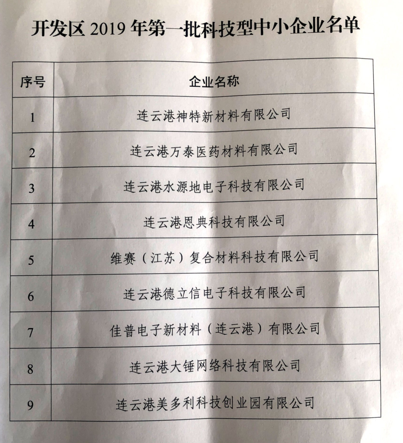 近日,公司被經(jīng)濟(jì)技術(shù)開發(fā)區(qū)管委會(huì)認(rèn)定為“2019年第一批科技型中小型企業(yè)”。