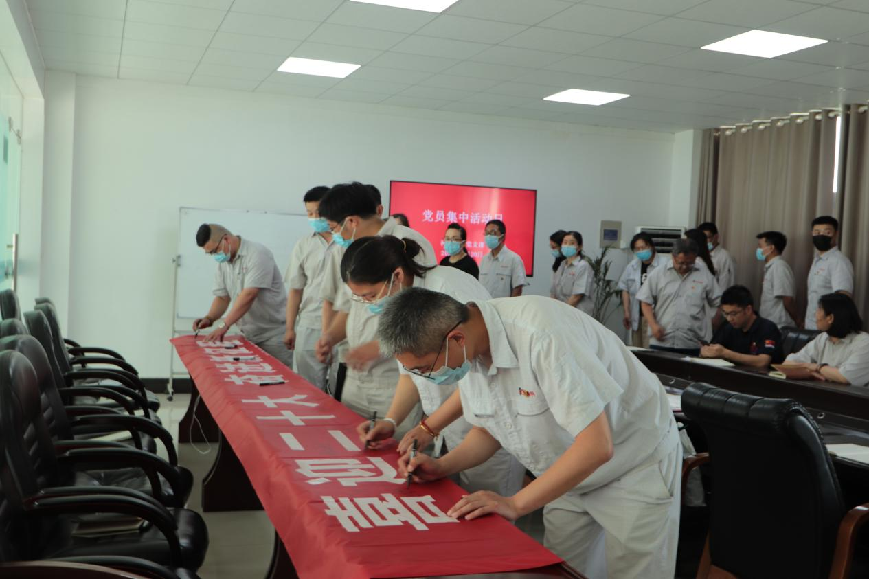 在七一即將來臨之際,公司組織全體黨員開展“喜迎二十大,奮進(jìn)新征程”黨員集中活動(dòng)日?;顒?dòng)中,與會(huì)黨員集體宣誓,重溫入黨誓詞,回憶入黨初心,并在條幅上簽名,作出鄭重承諾。公司黨支部表彰一批優(yōu)秀共產(chǎn)黨員,激勵(lì)全體黨員守初心、勇?lián)姑?、攻?jiān)克難、建功立業(yè)。