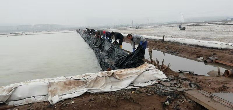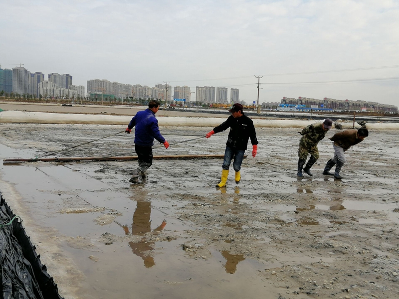 由于勞動力較為缺乏,人工扒鹽分為兩個班次白班和小夜班。工人們在完成各自班次任務(wù)的同時,還要承擔(dān)起后期繁瑣的相關(guān)工作。例如:扒鹽前要將塑池內(nèi)的塑布整理、收縮到位、用活碴機對準(zhǔn)備要扒格塊進(jìn)行活碴、成廩后對鹽廩全面覆蓋、并抽出專人對大夜班空檔期電纜線及機電設(shè)備進(jìn)行看管等等。其中池板整理是一項緊急活,扒完鹽后鹵水要緊跟著進(jìn)池,小夜班的人下班后有時只睡幾個小時,早上7點多就來到灘頭整理池板,為抓緊灌池爭分奪秒爭。