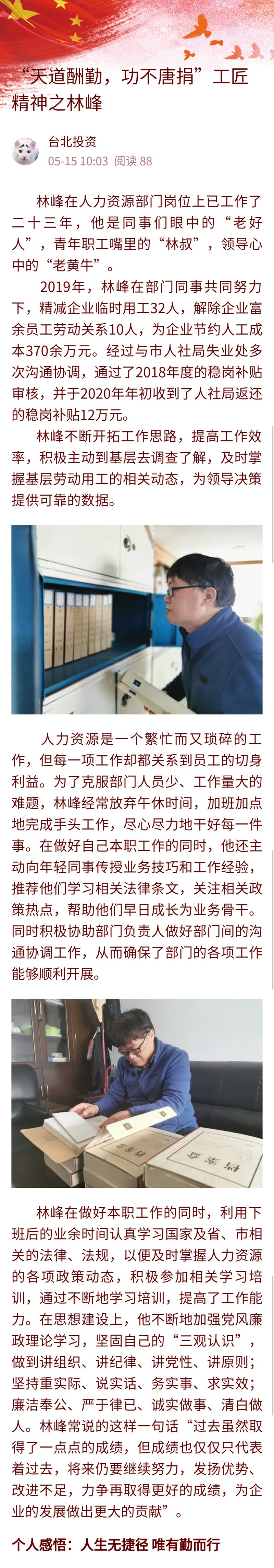 【匠心筑夢(mèng) 實(shí)干興企】“天道酬勤,功不唐捐”工匠精神之林峰
