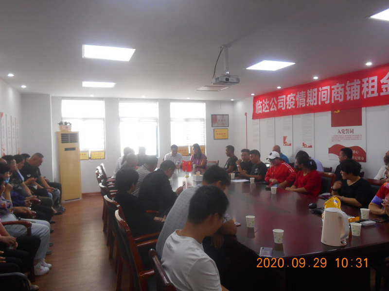 臨達(dá)公司黨支部堅(jiān)決和黨中央保持一致,堅(jiān)決擁護(hù)黨中央的決定,認(rèn)真學(xué)習(xí)了省、市以及集團(tuán)公司等減免疫情期間房租的相關(guān)文件精神,仔細(xì)研究、反復(fù)討論,經(jīng)上報(bào)臺(tái)北投資公司、集團(tuán)公司兩級(jí)黨委批準(zhǔn),9月29日下午,減免光伸建材市場、德蘭建材市場、金三角市場、原公司院內(nèi)倉庫、院外大棚、猴嘴山洞共48家商戶3個(gè)月租金,計(jì)52萬余元,減免金額達(dá)全年租金收入四分之一。