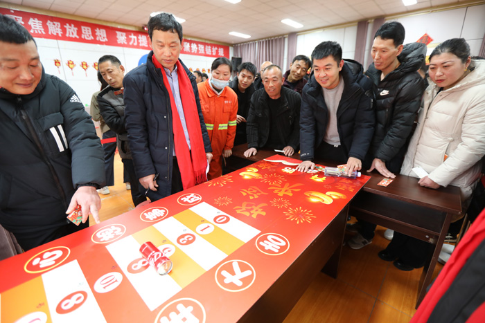 活動(dòng)中,參賽職工采取”六人一組”自由組隊(duì)形式,每人最多參加三個(gè)項(xiàng)目比賽,每個(gè)項(xiàng)目設(shè)置獲獎(jiǎng)人員1名。在比賽現(xiàn)場(chǎng),參賽職工手持項(xiàng)目卡,來(lái)回穿行找人組隊(duì),參加完一個(gè)項(xiàng)目比賽,又忙著下一個(gè)項(xiàng)目組隊(duì)賽。在每一個(gè)項(xiàng)目比賽點(diǎn),在裁判人員的嚴(yán)格要求下,參賽人員在輕松愉快的氛圍中爭(zhēng)相競(jìng)技,展示比賽水平。一輪又一輪的“平分加賽”贏得觀眾陣陣歡呼。憑借“集章卡”編號(hào)參加的抽獎(jiǎng)活動(dòng)產(chǎn)生10名幸運(yùn)獎(jiǎng),把活動(dòng)推向一個(gè)又一個(gè)的迎慶高潮。
