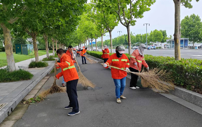 集中奉獻(xiàn)“熱火朝天”。學(xué)習(xí)結(jié)束后,保潔、瑞南支部近20余名黨員,匯集于徐圩新區(qū)核心區(qū)域上海路、南京路輔道現(xiàn)場,開展人工清掃道路積土,樹葉集中奉獻(xiàn)勞動。勞動現(xiàn)場,大家無懼七月高溫炎熱天氣,揮動手中大掃把,迅速清掃落葉,雨水沖涮下來的綠化帶中泥土長達(dá)2000多米長,打包轉(zhuǎn)運(yùn)各類垃圾30多包,看著整潔黑色路面呈現(xiàn)眼前,隊(duì)員們情不自禁露出開心的笑容。(楊波 金知青)