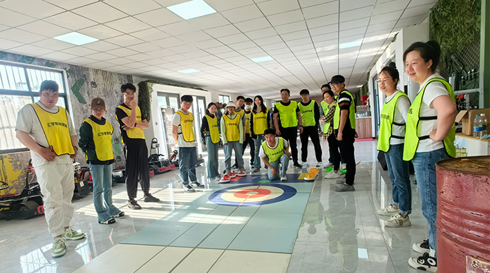 30余名青年骨干依次分成兩隊進(jìn)行團(tuán)隊拓展比賽,大家在暖場游戲破冰行動中相互熟悉。緊接著大家按照隊伍分組開展訓(xùn)練游戲,訓(xùn)練中大家集中精力,相互扶持幫助,共同完成對戰(zhàn)。其中冰壺游戲考驗每位青年的耐心和定力,需要瞄準(zhǔn)方向,掌握好力度,共同協(xié)作得出好成績。多個極富挑戰(zhàn)性的項目在大家的齊心協(xié)力下順利完成。整場活動現(xiàn)場氣氛活躍,盡顯青春活力,比賽的形式也將本次活動推向了高潮。