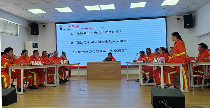 為提升職工安全知識(shí)素養(yǎng),強(qiáng)化職工防災(zāi)減災(zāi)安全意識(shí),助力公司安全管理各項(xiàng)工作再上新臺(tái)階。5月14日下午,保潔分公司在悅升401會(huì)議室開展防災(zāi)減災(zāi)”安全知識(shí)競(jìng)賽活動(dòng)。來自保潔分公司近50余名職工參加。