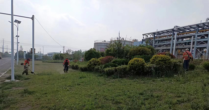 板橋工業(yè)園區(qū)祥和路、云港路、瑞和路等路段,隨處都可見到綠化工人忙碌的身影,他們不畏辛苦,搶時間、抓進度,對綠籬、綠化苗木進行修剪造型。園區(qū)路邊,機器轟鳴,除草工作有條不紊。綠化工人們頭戴防護帽,架著割草機,動作嫻熟,割草效率極高。三人一排、兩人一對,齊頭并進,戰(zhàn)線推進過的地方?jīng)芪挤置鳎粝乱黄R的坡面,賞析悅目。經(jīng)過多日持續(xù)奮戰(zhàn),已經(jīng)完成綠地雜草清理15萬平方米,綠籬修剪3萬平方米任務(wù)。為高標(biāo)準(zhǔn)完成二季度綠化管養(yǎng)目標(biāo)奠定基礎(chǔ)。(劉永)