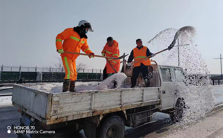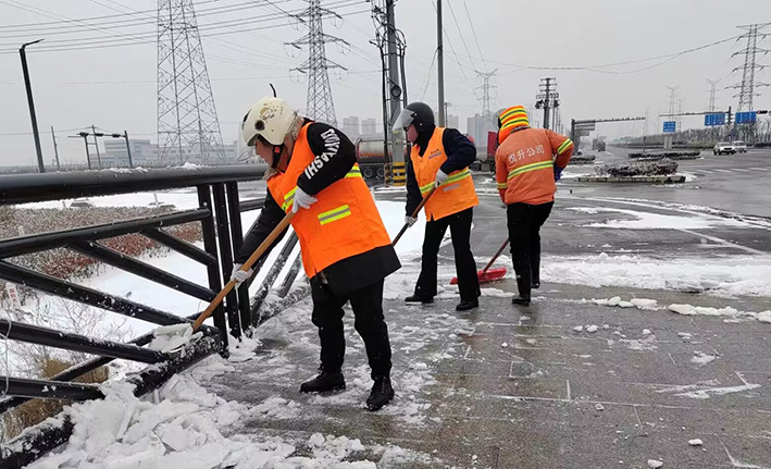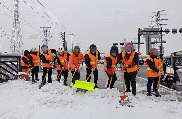 在白雪皚皚的雪地里,身穿橘黃工作服的保潔工人就是最美的點綴,他們頂著風雪吹打臉頰,兩人一組、三人一對,配合默契,揮動手中鐵銑,用力拋灑融雪鹽斤80多噸,10余車。道路橋粱兩側(cè),人行輔道邊上,公司上下齊心協(xié)力,9名班長在公司統(tǒng)一調(diào)配下,帶領(lǐng)班組人員,人工清除大小橋梁兩側(cè)積雪30多座,人行輔道長達3000多米長,站臺、叉路口積雪100多處,為保障恢復(fù)雪后新城環(huán)境整潔而努力工作。大型清掃設(shè)備駕駛員全員齊上陣,安全行車裝運融雪鹽斤里程達200多公里,工作時長10個多小時,安全操作鋤雪機械清理張圩互通引橋,埒子口大橋等路段長達5000多米長,有力彰顯機械破冰、除雪強大功能。(楊波)