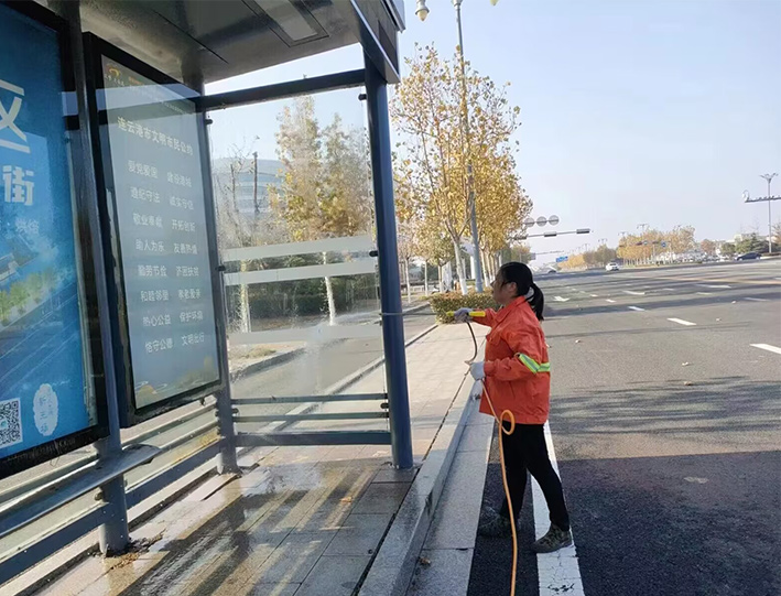 該分公司百余名一線保潔人員,無(wú)懼徐圩初冬低溫天氣,道路兩側(cè),公交站臺(tái),三人一組,兩人一對(duì)在班長(zhǎng)帶動(dòng)下,揮動(dòng)手中大掃把,上下擺動(dòng)拖把,人工清掃輔道落葉2000多米長(zhǎng),清洗站臺(tái)30多個(gè),徒手擦洗座椅60多個(gè),清倒果皮箱200多個(gè);突擊轉(zhuǎn)運(yùn)園區(qū)施工垃圾300袋,有力保障途經(jīng)道路環(huán)境整潔靚麗;大型車輛整裝待發(fā),持續(xù)三天加班加點(diǎn),7時(shí)許準(zhǔn)時(shí)加滿車廂用水,安全有序到達(dá)指定路段,20臺(tái)大中型清掃沖洗車輛作業(yè)臺(tái)班達(dá)4個(gè)以上,為成功完成此次大保障有力彰顯機(jī)械強(qiáng)大功能。