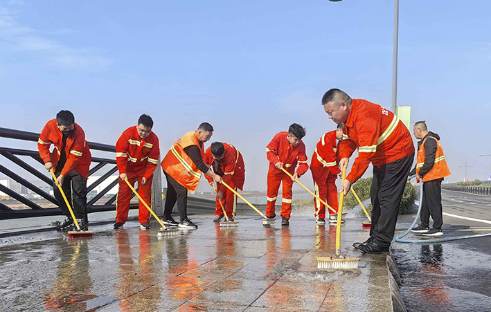 10月18日上午,悅升公司機關管理人員深入一線對海濱大道南卡口至疏港大道路段及橋梁路緣石進行強化清洗,用實干打好賽道保障“戰(zhàn)役”。工作現(xiàn)場,一臺高壓沖洗車先行對賽道路緣石和橋梁輔道進行高壓沖洗,隨后,工作人員一字排開,用毛刷不斷擦洗地面頑固臟污,大家斗志昂揚、步步推進,做到沖洗無漏洗、無死角,最后再用灑水車清洗一遍。經過近三小時清洗,高標準完成路源石和橋梁輔道保潔清洗工作,有效提高了賽道潔凈度。截至目前,已完成該路段2000多米路緣石清洗工作。