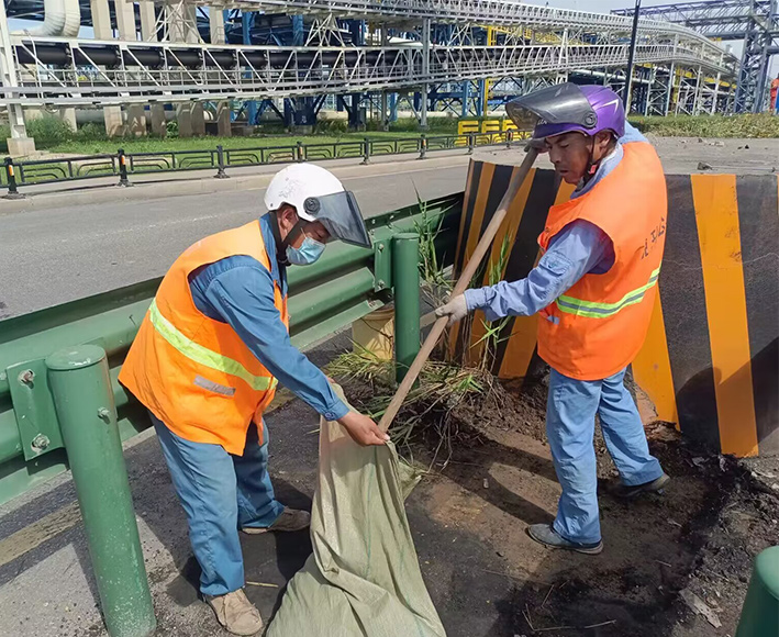 示范引領(lǐng)處處呈現(xiàn)。節(jié)前環(huán)境大治理工作開(kāi)展以來(lái),全公司下掀起“大干15天、再創(chuàng)新佳績(jī)”勞動(dòng)競(jìng)賽活動(dòng)。道路一線黨員示范作用有力得以彰顯。黨員張學(xué)軍、龔飛、姚功、陳小軍等同志工作中爭(zhēng)先恐后,臟活累活沖鋒在前,呈現(xiàn)出熱火朝天的繁忙工作景象。園區(qū)班組、女子班組突擊清理道路兩邊的雜草、岔路口泥土,大型車(chē)輛拋灑石子。清理路面達(dá)3000多米長(zhǎng),清理打包深秋梧桐落葉達(dá)100多袋,確保行車(chē)安全與環(huán)境治理同步進(jìn)行。