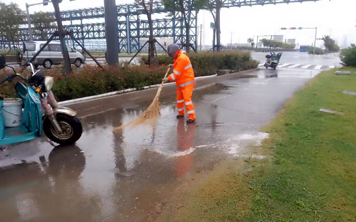 該分公司9個班組人員,在公司統(tǒng)一安排下,按時到達指定道路保潔路段。在班長的帶領(lǐng)下,不停的排查清理路面各類垃圾,揮動手中大掃把,清理道路積水30多處,徒手清倒果皮箱200多個,20臺大中型清掃車輛安全有序趕赴指定清掃路線,加滿車廂用水,工作臺班達40余個?,F(xiàn)場工作中黨員先鋒示范引領(lǐng)一路彰顯,人工清理路障石塊20多塊,清理上海路大風刮落梧桐落葉,樹枝30多袋,工作時長達4個多時,風雨中愛崗敬業(yè)畫面處處體現(xiàn),有力保障雨中新城道路環(huán)境整潔靚麗。(楊波)